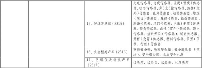 根據(jù)201975日市場監(jiān)管總局發(fā)布的《市場監(jiān)管總局關(guān)于防爆電氣產(chǎn)品從生產(chǎn)許可到強(qiáng)制性產(chǎn)品認(rèn)證管理實(shí)施要求的通知》(2019年第34),防爆電氣產(chǎn)品認(rèn)證范圍適用于一類、二類和三類產(chǎn)品產(chǎn)品包括:防爆電機(jī);防爆電動泵;防爆配電設(shè)備產(chǎn)品;防爆開關(guān)、控制和保護(hù)產(chǎn)品;防爆起動器產(chǎn)品;防爆變壓器產(chǎn)品;防爆電動執(zhí)行器和電磁閥;防爆插件裝置;防爆監(jiān)控產(chǎn)品;防爆通信和信號裝置;防爆空調(diào)和通風(fēng)設(shè)備;防爆電加熱產(chǎn)品;防爆附件、防爆組件;防爆儀器儀表產(chǎn)品;防爆傳感器;安全屏障產(chǎn)品;防爆儀表箱產(chǎn)品共有17大類158種產(chǎn)品,認(rèn)證產(chǎn)品的范圍和相應(yīng)的產(chǎn)品類別代碼如下: