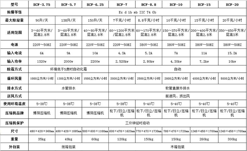 防爆除濕機(jī)技術(shù)參數(shù):